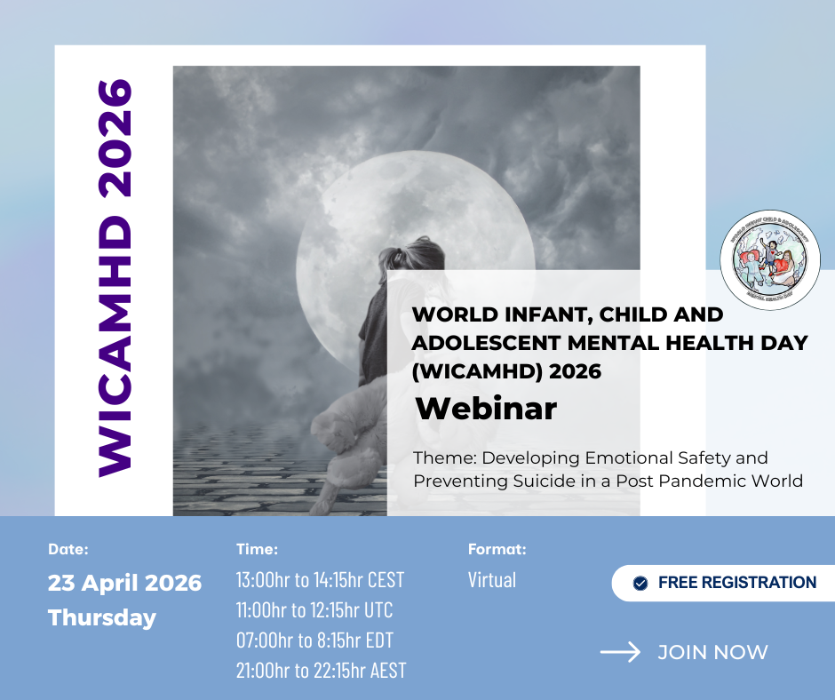 Join us for the World Infant, Child and Adolescent Mental Health Day (WICAMHD) 2026 webinar, themed “Developing Emotional Safety and Preventing Suicide in a Post‑Pandemic World”. The webinar is open to the public and participation is free, but registration is required in advance. Seats are limited, and it’s based on first-come, first-served.